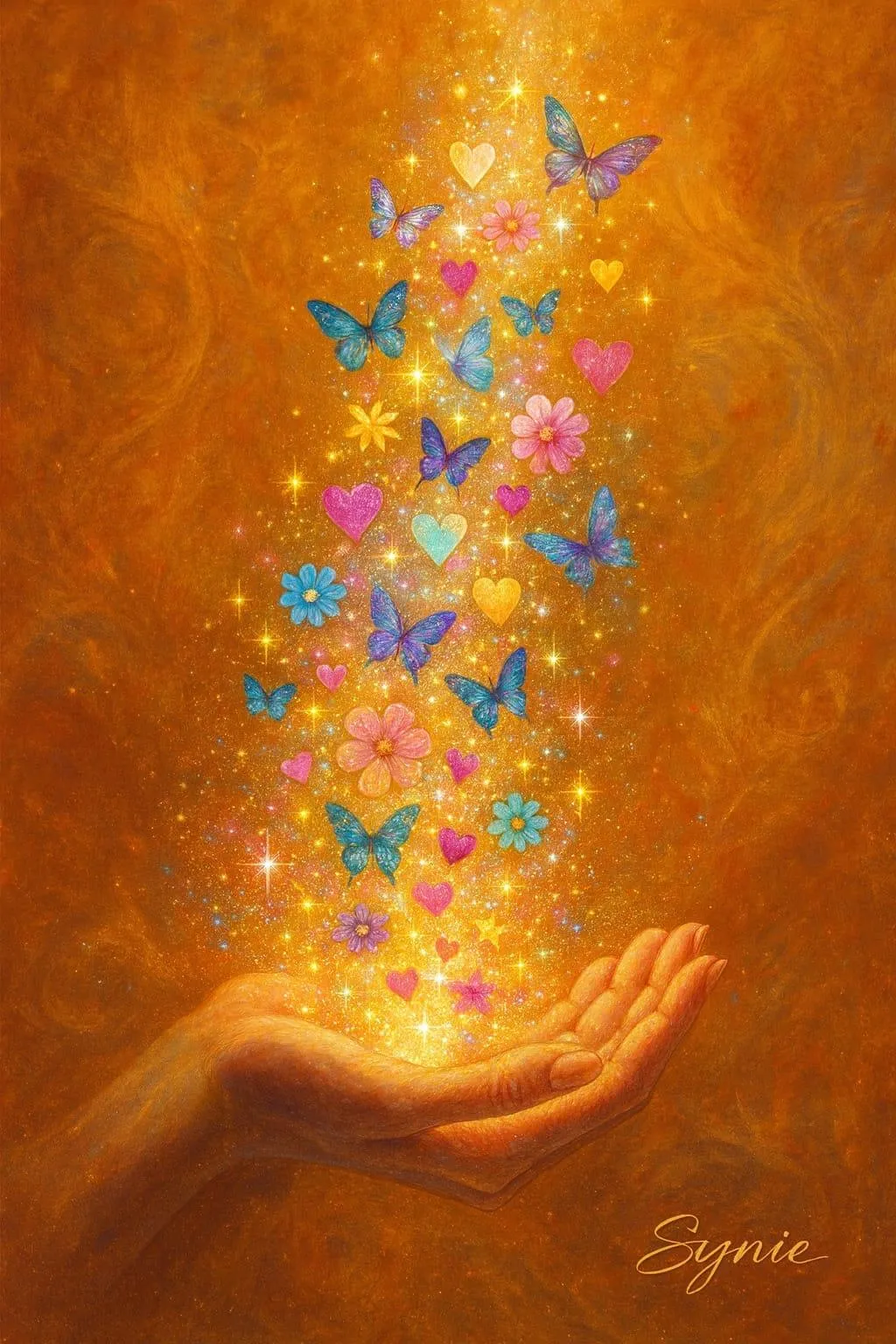 Synie se connecte à ton énergie, canalise les messages subtils qui t'appartiennent et crée une création unique, à ton image, à ta vibration du moment.